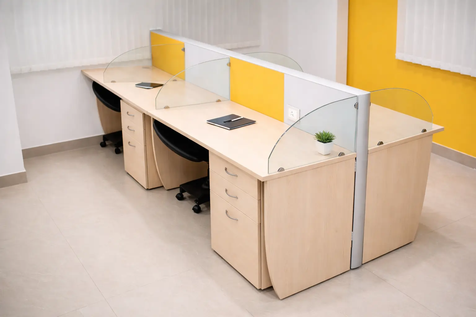 • Engineered with flexible configurations that adapt to your evolving team size and floor plan, ensuring a future-proof office layout. • Integrated styling with acoustic privacy panels and seamless wire management systems to create clean, distraction-free work zones. • Constructed using commercial-grade materials that provide lasting durability while adding a sleek, modern aesthetic to the workplace.