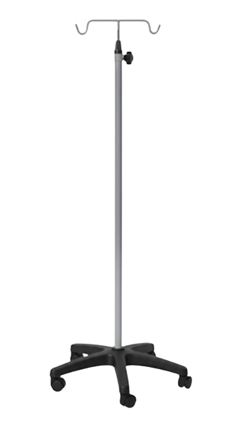 • 5 Pronged plastic base fitted with 5 cm diameter castors. • 12 mm S.S. Adjustable double hook I.V. Rod. • Fixed height secured by knob.