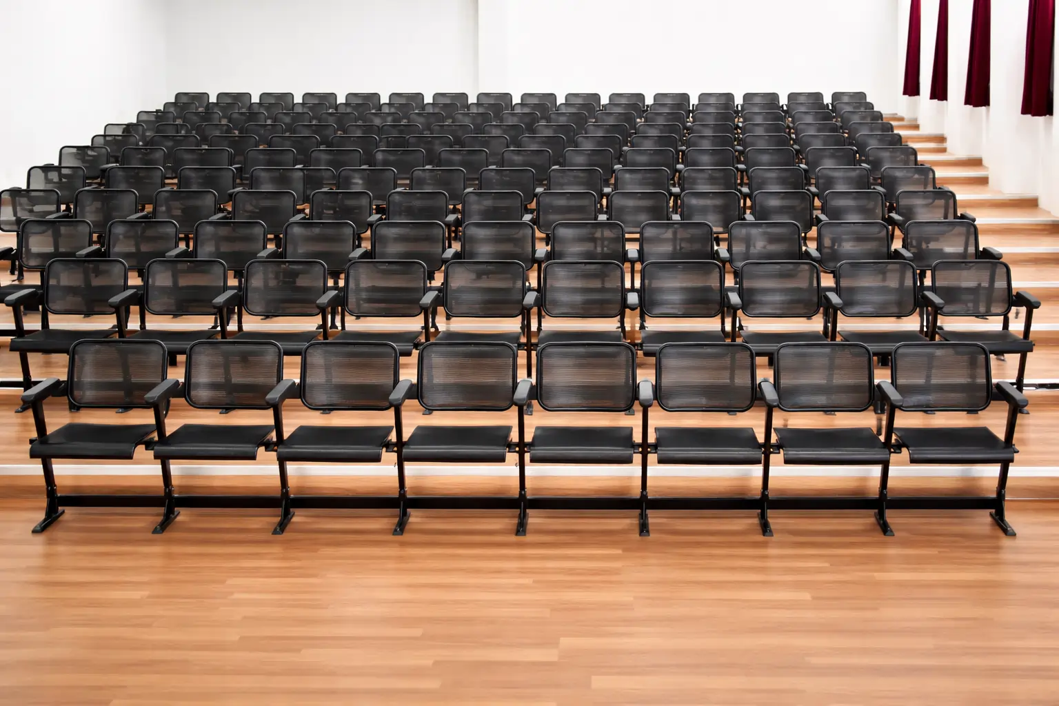 • Designed for theaters, lecture halls, and auditoriums that demand performance and longevity. • Features smooth gravity tip-up seats, integrated armrests (optional writing tablets), and ergonomic lumbar support. • Built with heavy-duty mechanisms and acoustic-grade upholstery to enhance both comfort and venue acoustics.