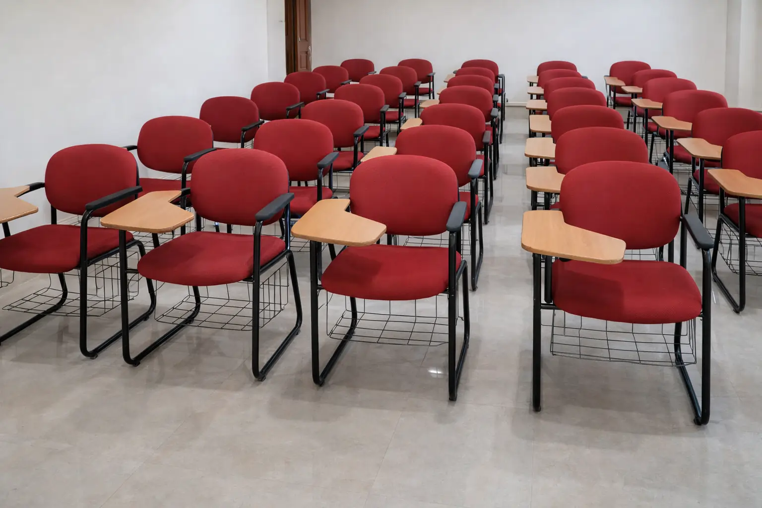• Built for seminar halls and training rooms, featuring foldable or 360° swivel writing pads. • Available in cushioned or breathable polymer designs, delivering comfort, flexibility, and durability under daily high usage.