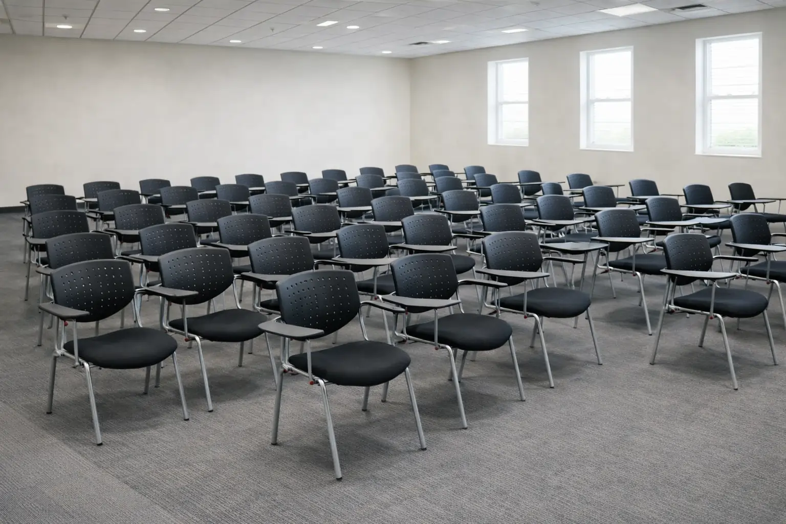 • Built for seminar halls and training rooms, featuring foldable or 360° swivel writing pads. • Available in cushioned or breathable polymer designs, delivering comfort, flexibility, and durability under daily high usage.