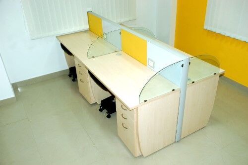 Also called by its other names like straight workstation or row type workstation. This type of workstation can be in different sizes and normally will have partition in front of the desk with certain feet of height. The partition provided in respective sections have option for white board and fabric board for pinning up various documents. The surface has also different coating of materials and these types of workstations can be noticed in call centers, BPO and KPO industry.
