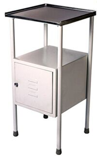 A stainless steel bedside locker for hospitals features a robust, corrosion-resistant construction with a polished finish for easy cleaning and hygiene. It typically includes a spacious drawer and cabinet for secure storage of patient essentials, smooth handles for accessibility, and raised edges on the top to prevent items from falling.